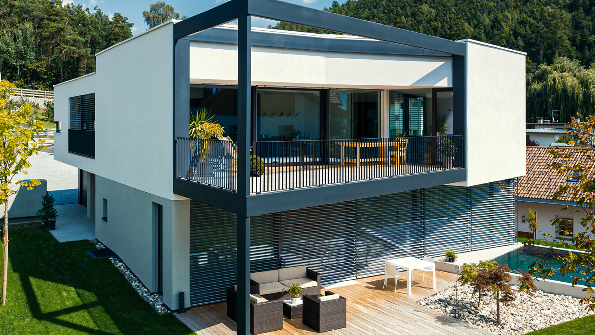 Dieser hochwertige Sonnenschutz lässt sich an Neubauten genauso flexibel einsetzen wie bei bestehenden Gebäuden.